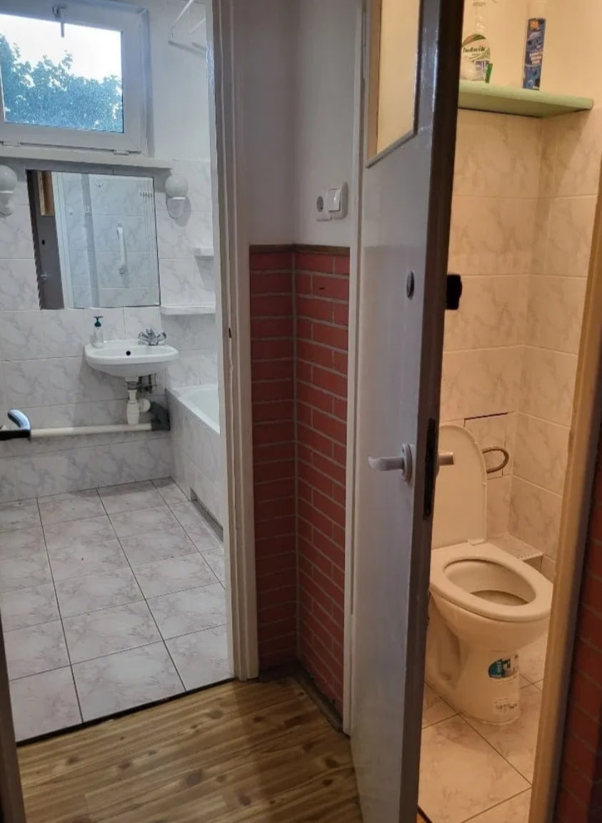 Mieszkanie z lat 90. Nieodnawiane od dekady. Stara instalacja, zużyte podłogi, przestarzała kuchnia i łazienka.